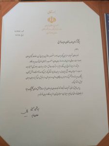 تقدیر معاون هنری و رئیس مرکز هنرهای نمایشی وزارت فرهنگ و ارشاد اسلامی از “عنایت آزغ قهرمان ملی حادثه کلنیک سینا اطهر تهران”