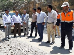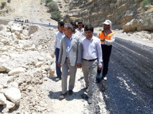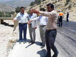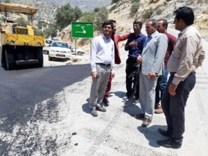 بازدید فرماندار چرام وبخشدارسرفاریاب به همراه مدیرکل راهداری وحمل ونقل جاده ای از عملیات لکه گیری و ترمیم جاده باغچه سادات