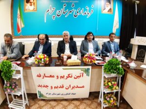 بنا به همین گزارش در این آئین مهندس حمزه امیری به عنوان رئیس جدید جهاد کشاورزی شهرستان چرام منصوب و معارفه شد و از زحمات مهندس آیت الله صفر پور مدیر سابق تقدیر شد
