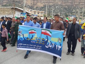 صبح امروز وهمزمان باسراسر کشور ،مراسم راهپیمایی ۱۳ ابان روز ملی مبارزه با استکبارجهانی با حضور پرشور دانش آموزان، دانشجویان ومسئولان پرشورترازسال های قبل برگزار شد.