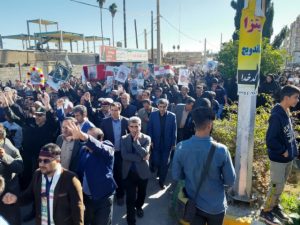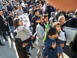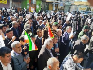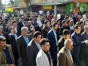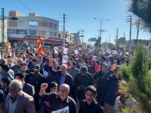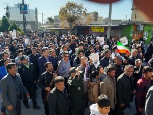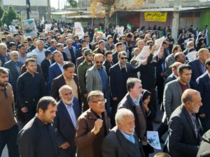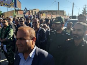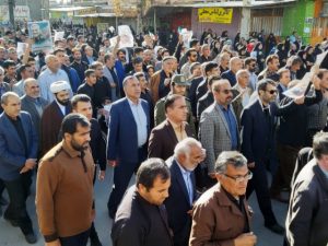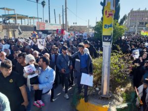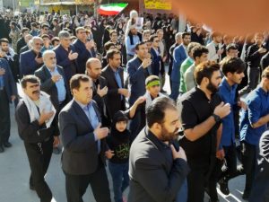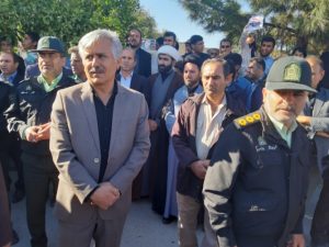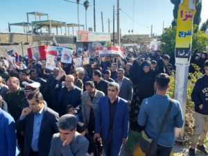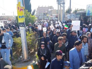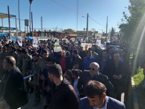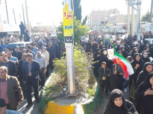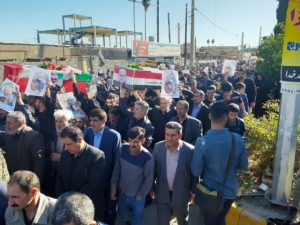 زن و مرد،پیر و جوان راهپیمایی در مسیر فرمانداری کهگیلویه به سمت مصلی نماز جمعه امتداد داشت دیده میشدند.