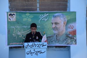 وی در پایان از مردم و جوانان خواست با مطالعه زندگی و سیره عملی شهید سلیمانی، روح مقاومت، ایثار و ولایتمداری را در جامعه زنده نگه دارند.