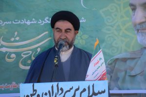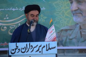 حجتالاسلام موسوی در بخش دیگری از سخنان خود با اشاره به بخشی از وصیتنامه شهید سلیمانی، بر ضرورت توجه به فرمایشات و رهنمودهای او تأکید کرد و گفت: حمایت از ولایت و رهبری، احترام به والدین شهدا و رسیدگی به خانوادههای شهید از مهمترین سفارشهای آن سردار پرافتخار بود.